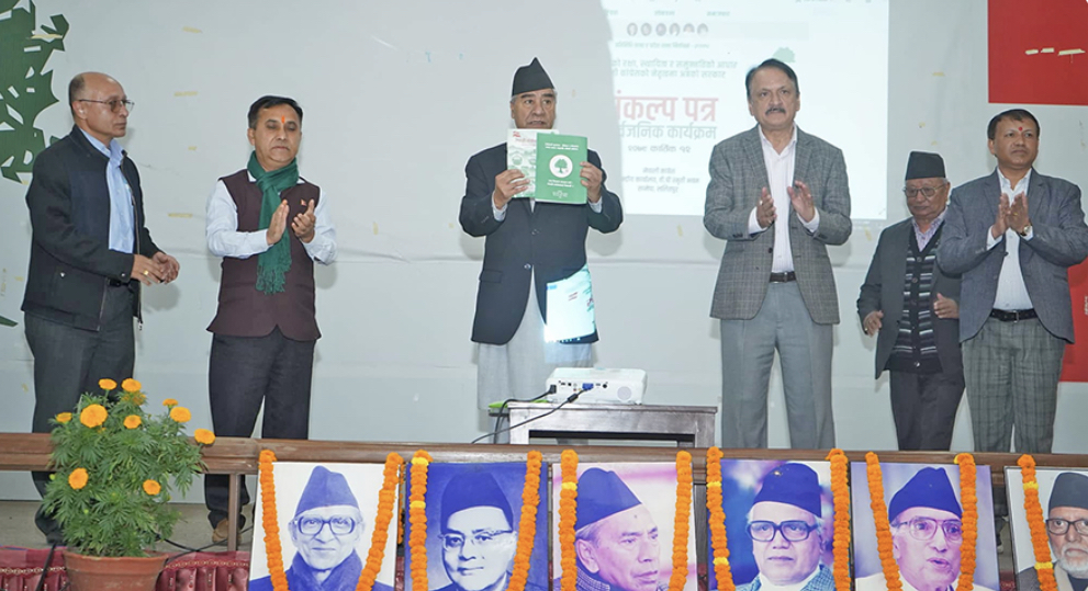 काठमाडौं । नेपाली कांग्रेसले आसन्न प्रतिनिधि सभा तथा प्रदेश सभा निर्वाचनका लागि चुनावी घोषणा पत्र सार्वजनिक गरेको छ । शनिवार पार्टी कार्यालय सानेपामा सार्वजनिक गरिएको घोषणा पत्रमा ३ वर्षमुनिका बालबालिका र ७३ वर्ष माथिका ज्येष्ठ नागरिकका लागि निःशुल्क स्वास्थ्य सेवा दिने लगायतका विषय घोषणा पत्रमा समावेश गरिएको छ ।