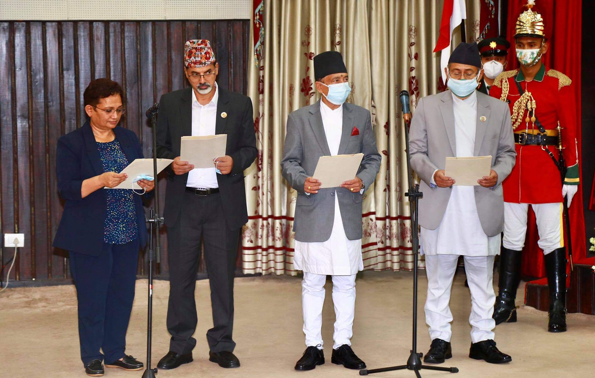 नवनियुक्त मन्त्रीहरुलाई राष्ट्रपति विद्यादेवी भण्डारीले पद तथा गोपनियताको शपथ सपथ खुवाएकी हुन् ।